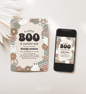 Little Boo Retro Ghost Baby Shower Invitation Template (Neutral)