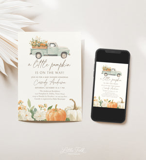 Little Pumpkin Vintage Truck Baby Shower Invitation