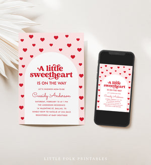 Celebrate a little one on the way with this 'Little Sweetheart' themed baby shower invitation! This is a template that you can edit yourself at Corjl.com, then download and print with a printing service of your choice or send as a digital invitation.