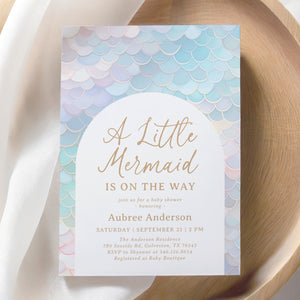 Celebrate a little one on the way with this mermaid baby shower invitation! This is a template that you can edit yourself at Corjl.com, then download and print with a printing service of your choice or send as a digital invitation.