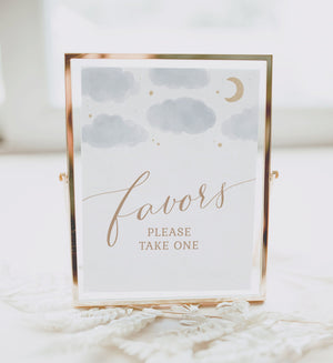 This listing is for an instant download, print-ready favors sign in the blue watercolor moon and stars baby shower theme. The following files will be included with your purchase:
