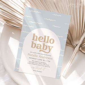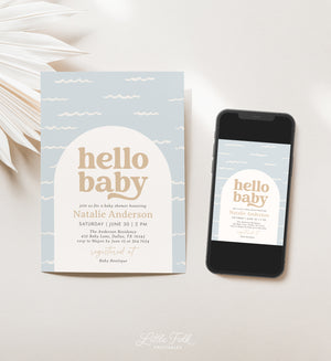 Celebrate a little one on the way with this beach baby shower invitation! This is a template that you can edit yourself at Corjl.com, then download and print with a printing service of your choice or send as a digital invitation.