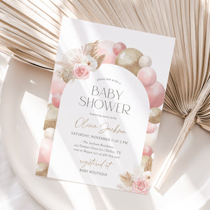 Pink Balloon Arch Baby Shower Invitation