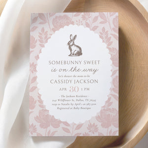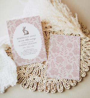 Celebrate a little one on the way with this bunny baby shower invitation! This is a template that you can edit yourself at Corjl.com, then download and print with a printing service of your choice or send as a digital invitation.