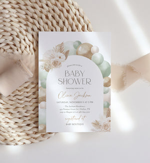 Sage Green Balloon Arch Baby Shower Invitation