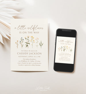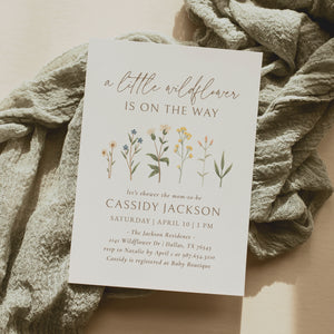 Celebrate a little one on the way with this wildflower baby shower invitation! This is a template that you can edit yourself at Corjl.com, then download and print with a printing service of your choice or send as a digital invitation.