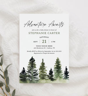 Celebrate a little one on the way with this woodland baby shower invitation! This is a template that you can edit yourself at Corjl.com, then download and print with a printing service of your choice or send as a digital invitation.