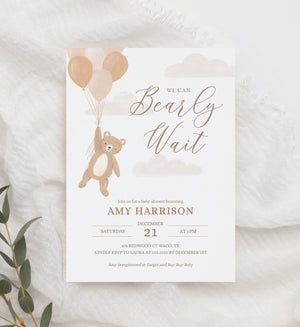 Editable We Can Bearly Wait Gender Neutral Baby Shower Invitation Template