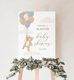 Welcome guests to your baby shower with this teddy bear themed welcome sign! This is a template that you can edit yourself at Corjl.com, then download and print with a printing service of your choice.