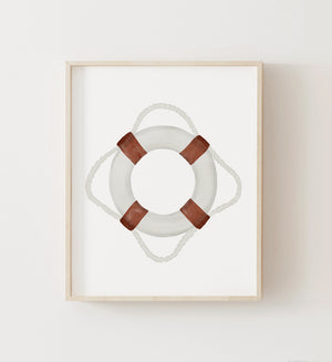 Decorate your beach or nautical themed space with this watercolor life preserver print.
