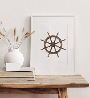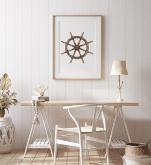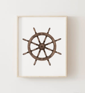 Decorate your beach or nautical themed space with this watercolor ship wheel print.