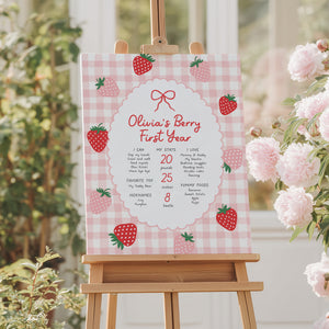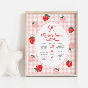Celebrate your child's special day with this strawberry birthday themed milestone sign! This is a template that you can edit yourself at Corjl.com, then download and print with a printing service of your choice or send as a digital invitation.
