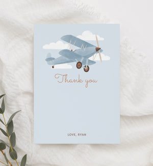 Editable Airplane Birthday Party Flat Thank You Card Template