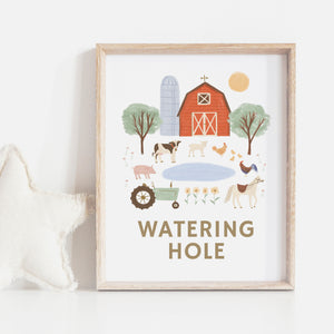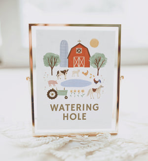This listing is for an instant download, print-ready 'Watering Hole' sign in the farm birthday party theme. The following files will be included with your purchase: