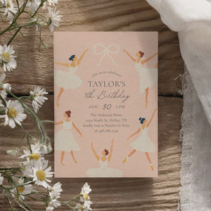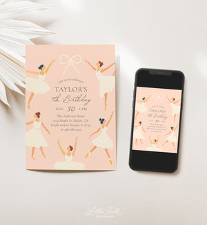 Celebrate your little one's special day with this ballerina birthday party invitation! This is a template that you can edit yourself at Corjl.com, then download and print with a printing service of your choice or send as a digital invitation.
