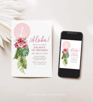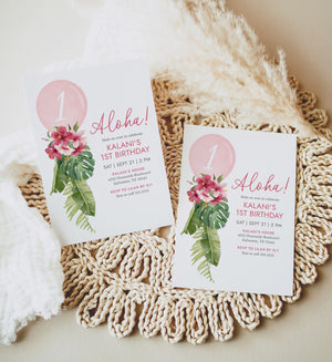 Editable 1st Luau Balloon Birthday Party Invitation Template