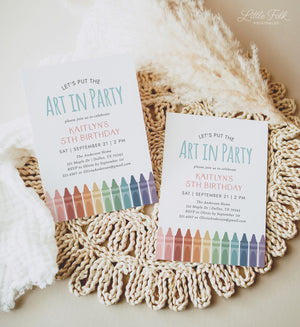 Celebrate your little one's special day with this art birthday party invitation! This is a template that you can edit yourself at Corjl.com, then download and print with a printing service of your choice or send as a digital invitation.
