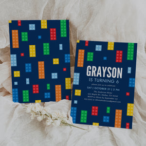 Celebrate your little one's special day with this building block themed birthday party invitation! This is a template that you can edit yourself at Corjl.com, then download and print with a printing service of your choice or send digitally.