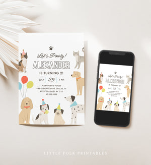 Editable Cats and Dogs Birthday Party Invitation Template
