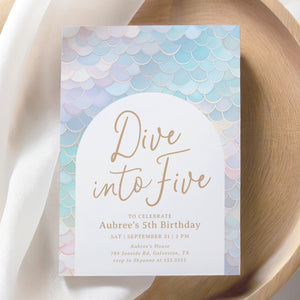 Editable Mermaid Scales 5th Birthday Invitation Template