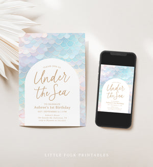 Editable Mermaid Scales Birthday Invitation Template (Under the Sea)