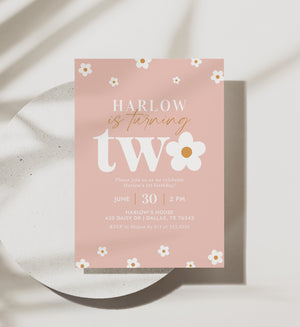 Editable Pink Daisy 2nd Birthday Invitation Template
