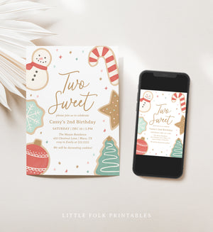 Editable Two Sweet Christmas Cookie Birthday Invitation Template