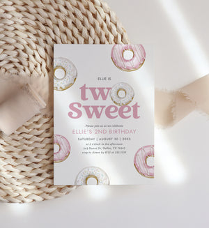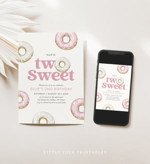 Editable Two Sweet Donut Birthday Invitation Template