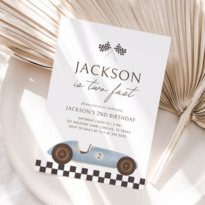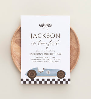Editable Vintage Race Car 2nd Birthday Invitation Template