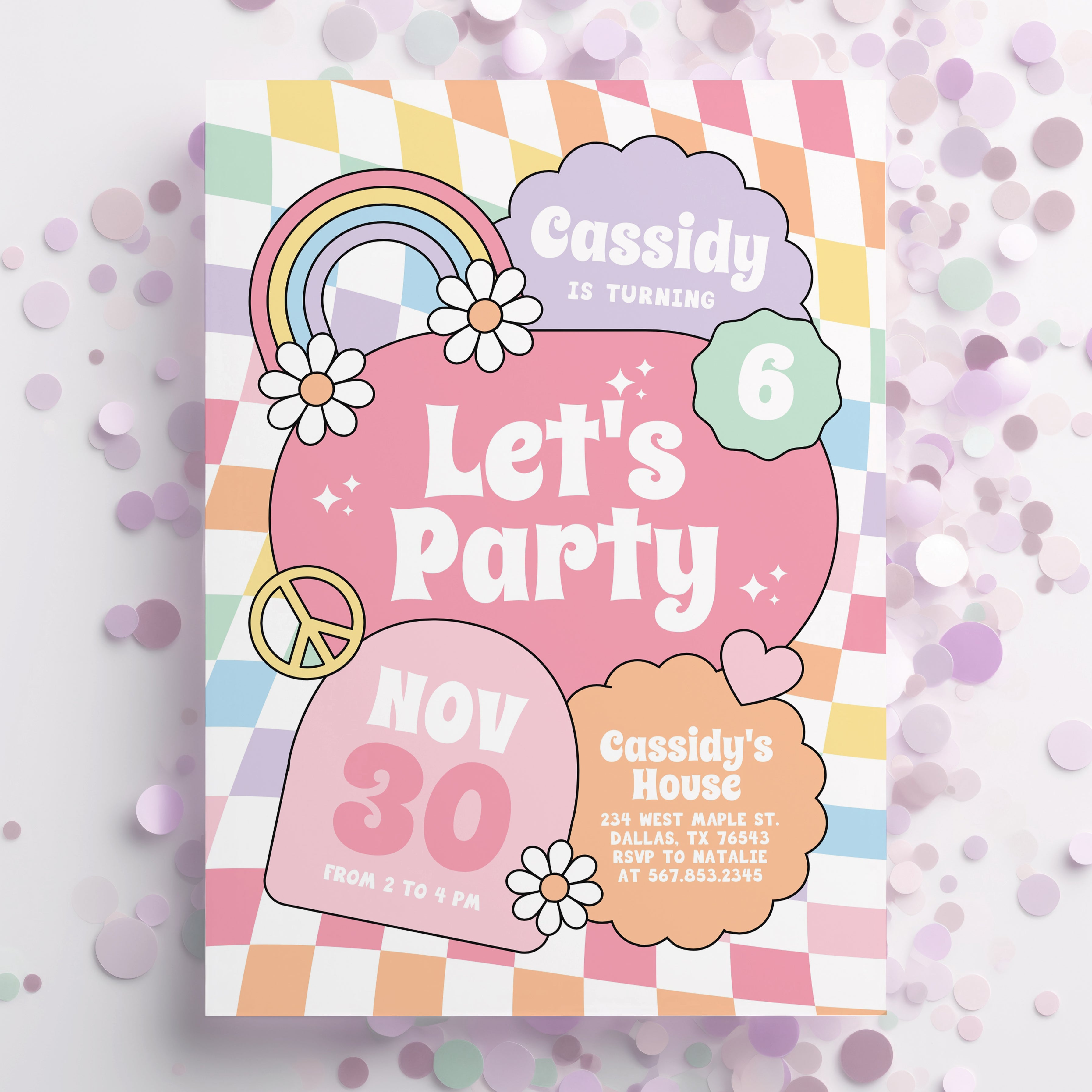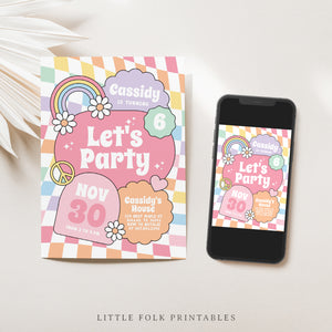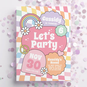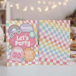 Groovy Pastel Rainbow Checker Birthday Invitation