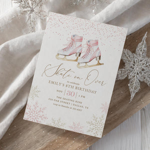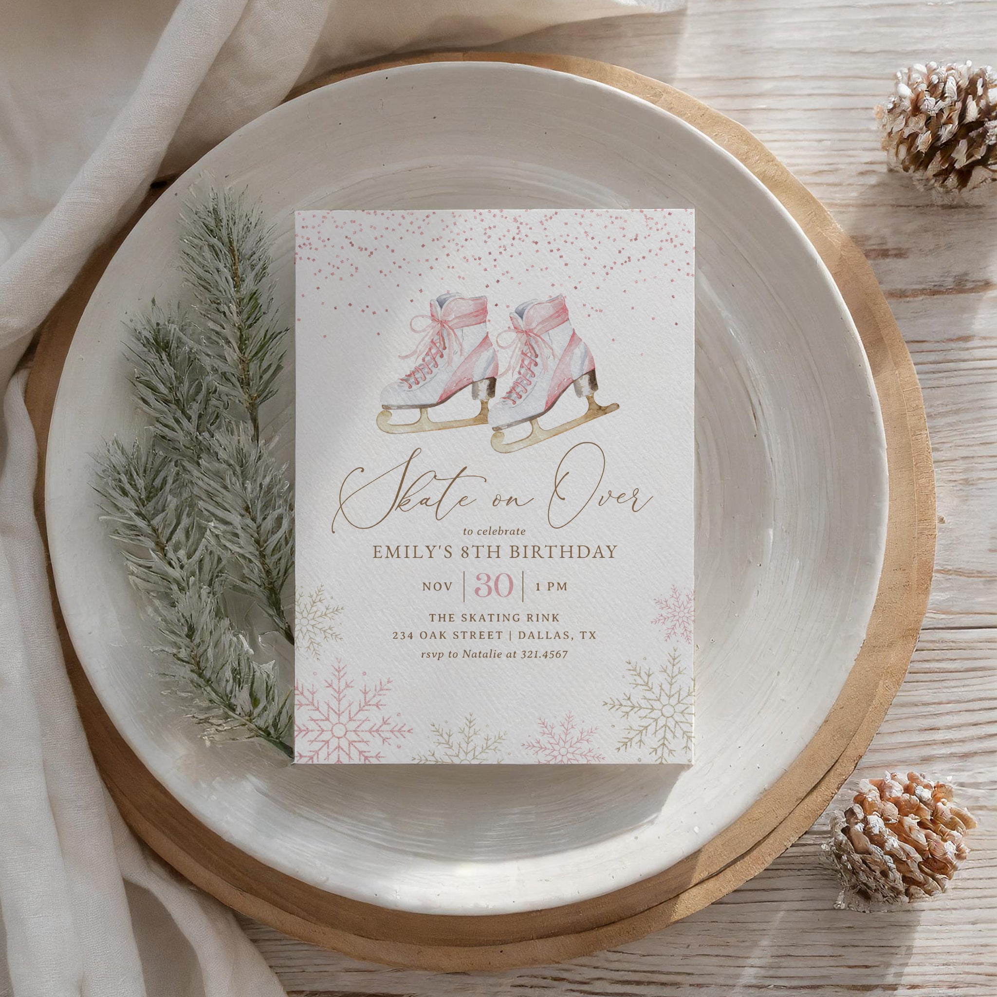 Celebrate your little one's special day with this ice skating birthday party invitation! This is a template that you can edit yourself at Corjl.com, then download and print with a printing service of your choice or send as a digital invitation.
