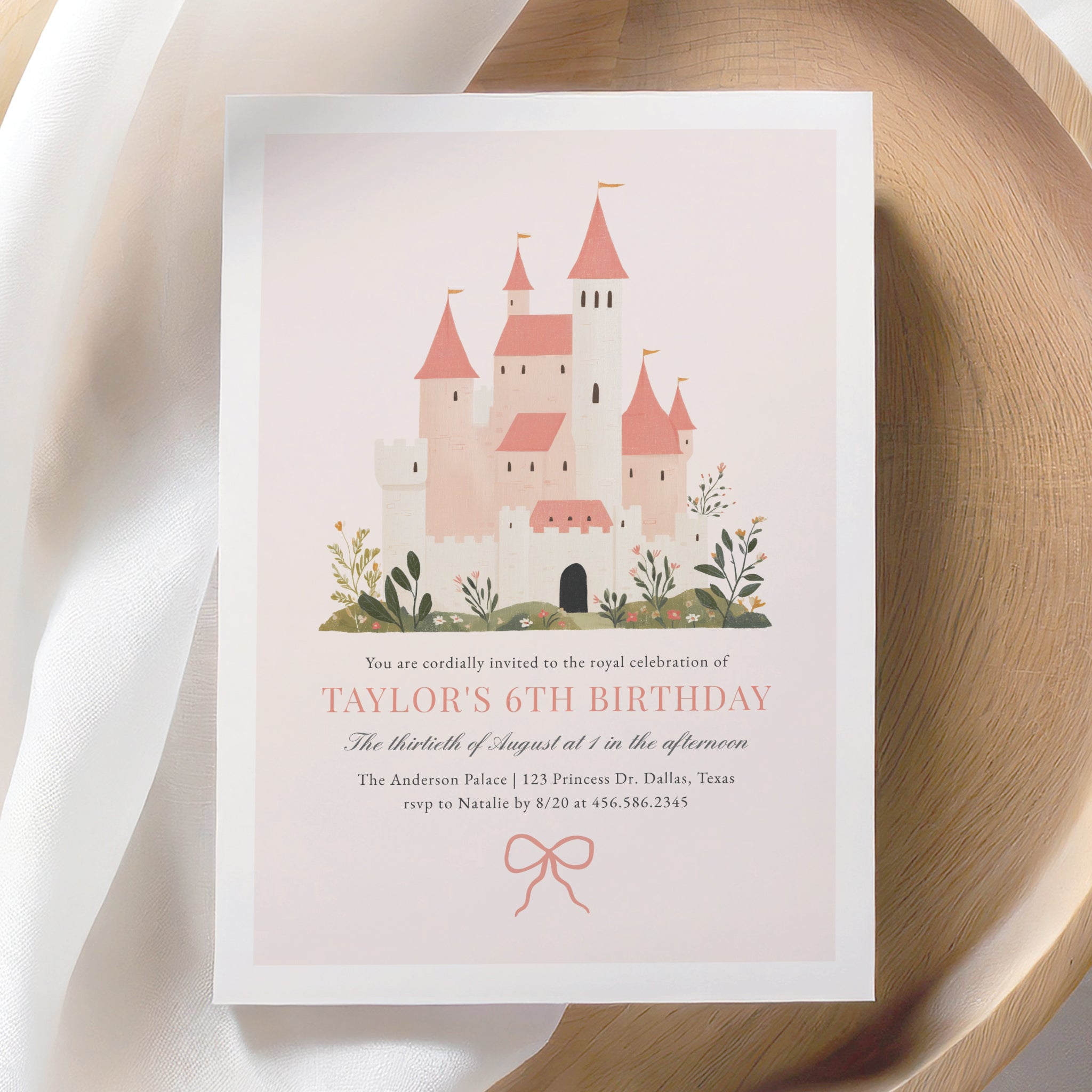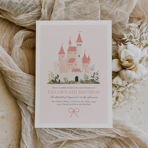 Celebrate your little one's special day with this princess birthday party invitation! This is a template that you can edit yourself at Corjl.com, then download and print with a printing service of your choice or send as a digital invitation.
