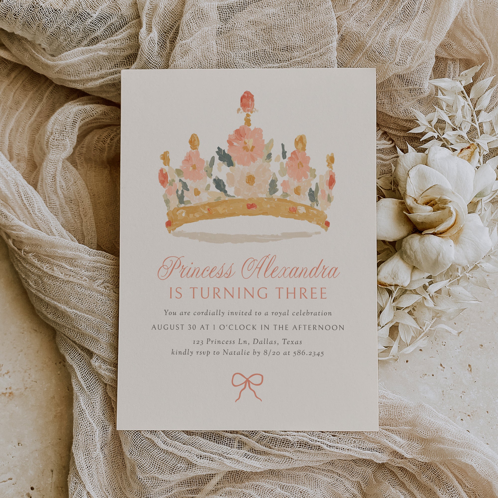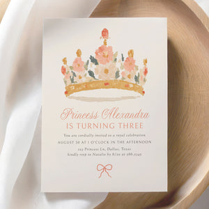 Celebrate your little one's special day with this princess birthday party invitation! This is a template that you can edit yourself at Corjl.com, then download and print with a printing service of your choice or send as a digital invitation.