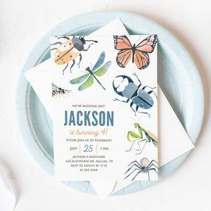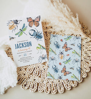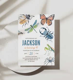 Celebrate your little one's special day with this bug birthday party invitation! This is a template that you can edit yourself at Corjl.com, then download and print with a printing service of your choice or send as a digital invitation.