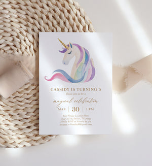 Editable Pastel Unicorn Birthday Party Invitation Template
