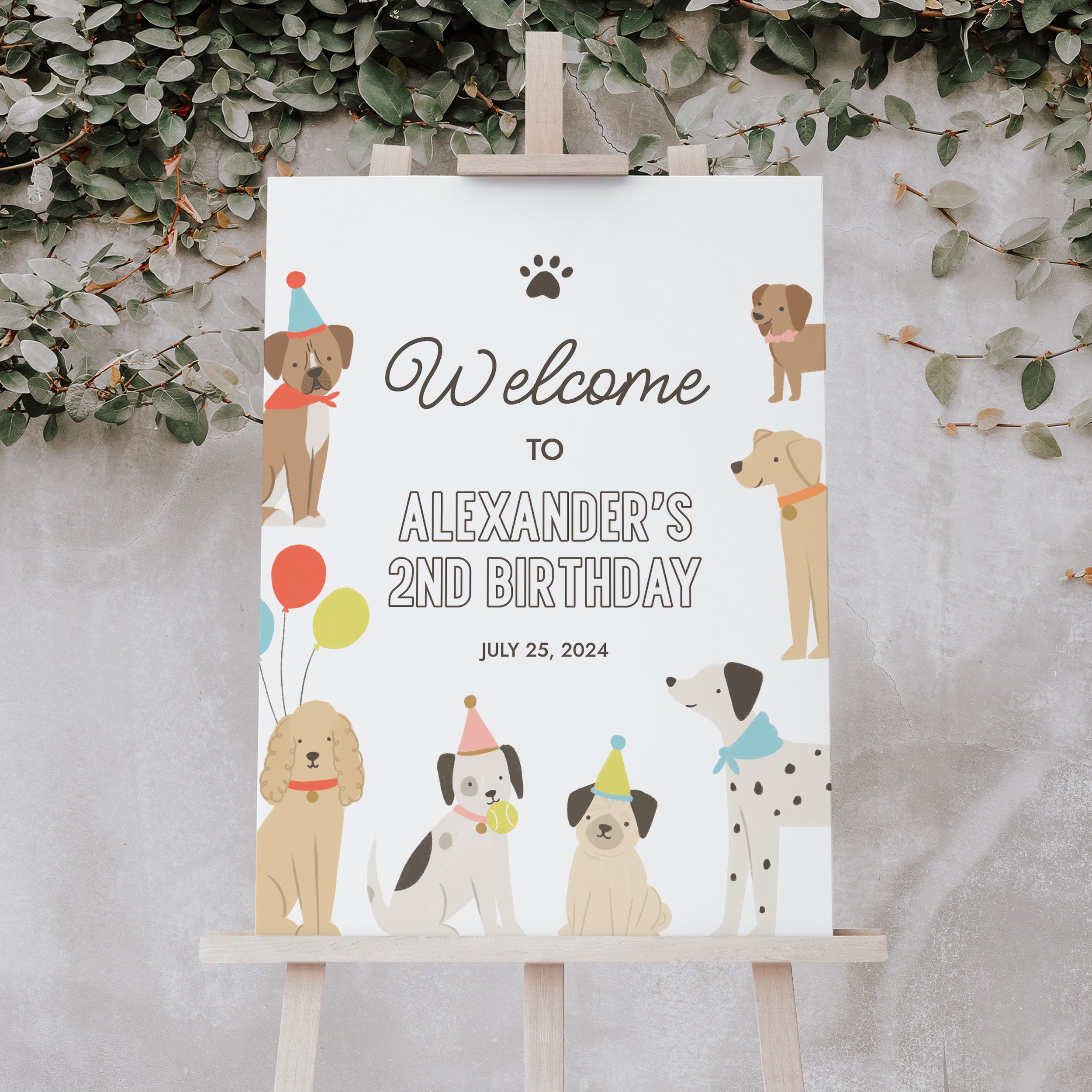 Add a finishing touch to your little one's puppy themed birthday party with this printable welcome sign template. This is a template that you can edit yourself at Corjl.com, then download and print at home or with a printing service of your choice.