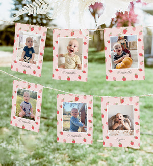 Add a finishing touch to your little one's strawberry themed birthday party with this printable photo banner template. This is a template that you can edit yourself at Corjl.com, then download and print at home or with a printing service of your choice.