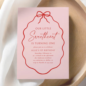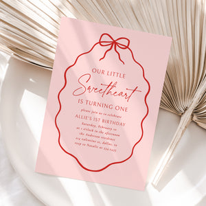 Little Sweetheart Hand Drawn Bow Birthday Invitation