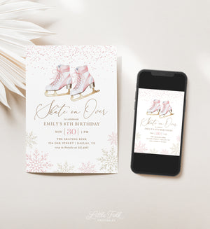 Celebrate your little one's special day with this ice skating birthday party invitation! This is a template that you can edit yourself at Corjl.com, then download and print with a printing service of your choice or send as a digital invitation.