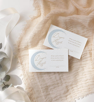Invite friends and family to bring a pack of diapers to you or your loved one's baby shower with this with this blue moon themed diaper raffle ticket! This is a template that you can edit yourself at Corjl.com, then download and print with a printing service of your choice.