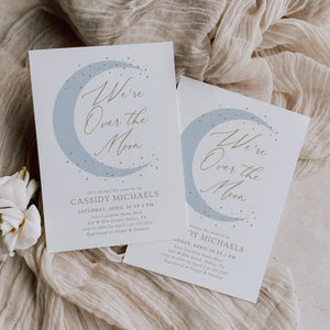 Celebrate a little one on the way with this 'Over the Moon' baby shower invitation! This is a template that you can edit yourself at Corjl.com, then download and print with a printing service of your choice or send as a digital invitation.