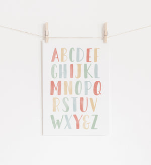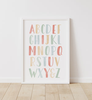 Introduce your kiddo to their ABC's this hand-lettered watercolor poster. Decorate a wall in your little one's nursery, bedroom, or playroom with this educational print to encourage learning everyday.