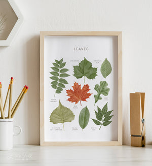 Introduce your kiddo to leaf types with this realistic illustrated poster. Decorate a wall in your little one's nursery, bedroom, or playroom with this educational print to encourage learning everyday.