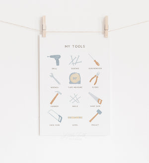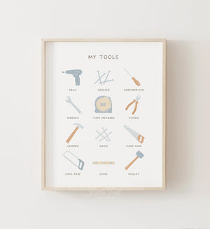 Introduce your kiddo to the different tools with this simple illustrated poster. Decorate a wall in your little one's nursery, bedroom, or playroom with this educational print to encourage learning everyday.