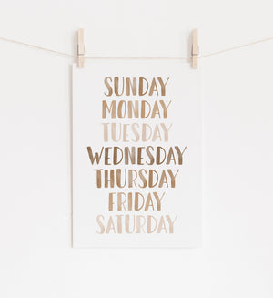Introduce your kiddo to the days of the week with this hand-lettered watercolor poster. Decorate a wall in your little one's nursery, bedroom, or playroom with this educational print to encourage learning everyday.