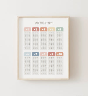 Teach your kiddo about subtraction with this colorful poster. Decorate a wall in your little one's nursery, bedroom, or playroom with this educational print to encourage learning everyday. Download, print, and trim your art within minutes or send it to your local print shop.