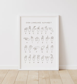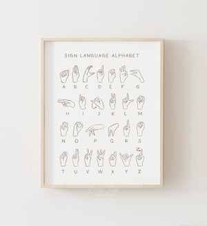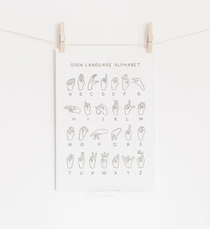 Help your child learn the American Sign Language alphabet with this illustrated poster! Decorate a wall in your little one's nursery, bedroom, or playroom with this educational print, or laminate for a hands-on tool to encourage learning everyday.