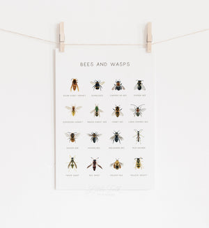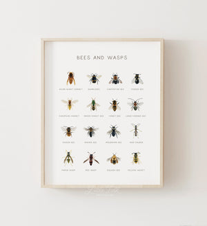 Introduce your kiddo to bee and wasp species with this illustrated watercolor poster. Decorate a wall in your little one's nursery, bedroom, or playroom with this educational print to encourage learning everyday.