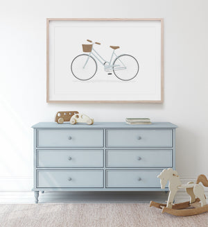 This illustrated bicycle print is beautiful and affordable way to decorate your nursery, kids room, or any wall that needs a bit of love!