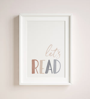 Let's read! This watercolor poster is perfect for a reading nook or kid's room.